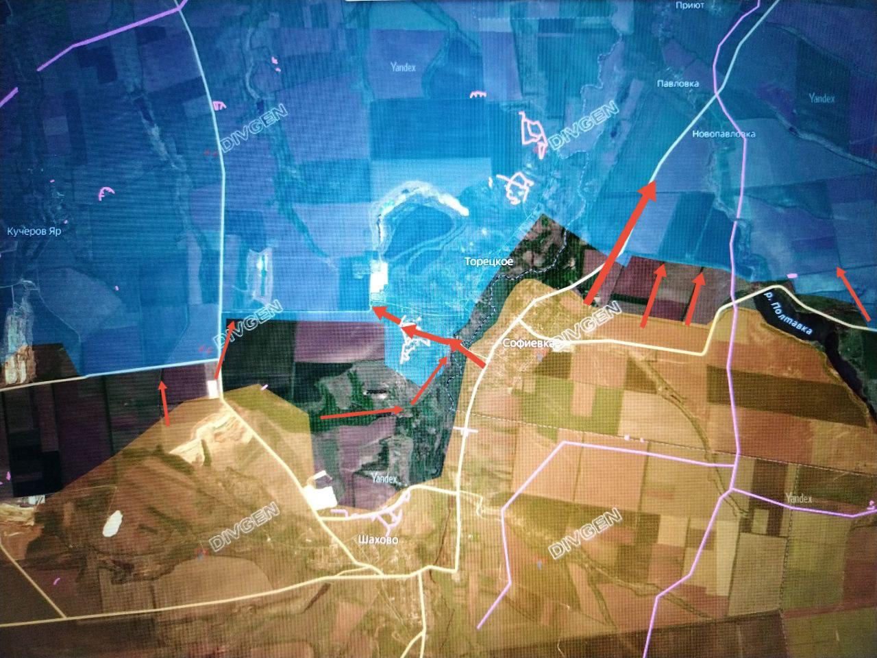 Наши подразделения атакуют в направлении Новопавловки на правом берегу р. Полтавка и восточнее (севернее Русин Яра и карьеров) в направлении с. Райское.
