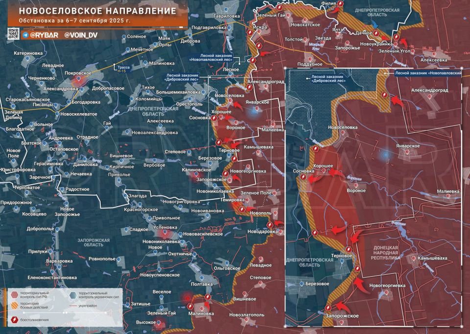 На Новоселовском направлении российским войскам удалось освободить Хорошее и завязать бои за Сосновку, а также продвинуться в окрестностях Тернового.