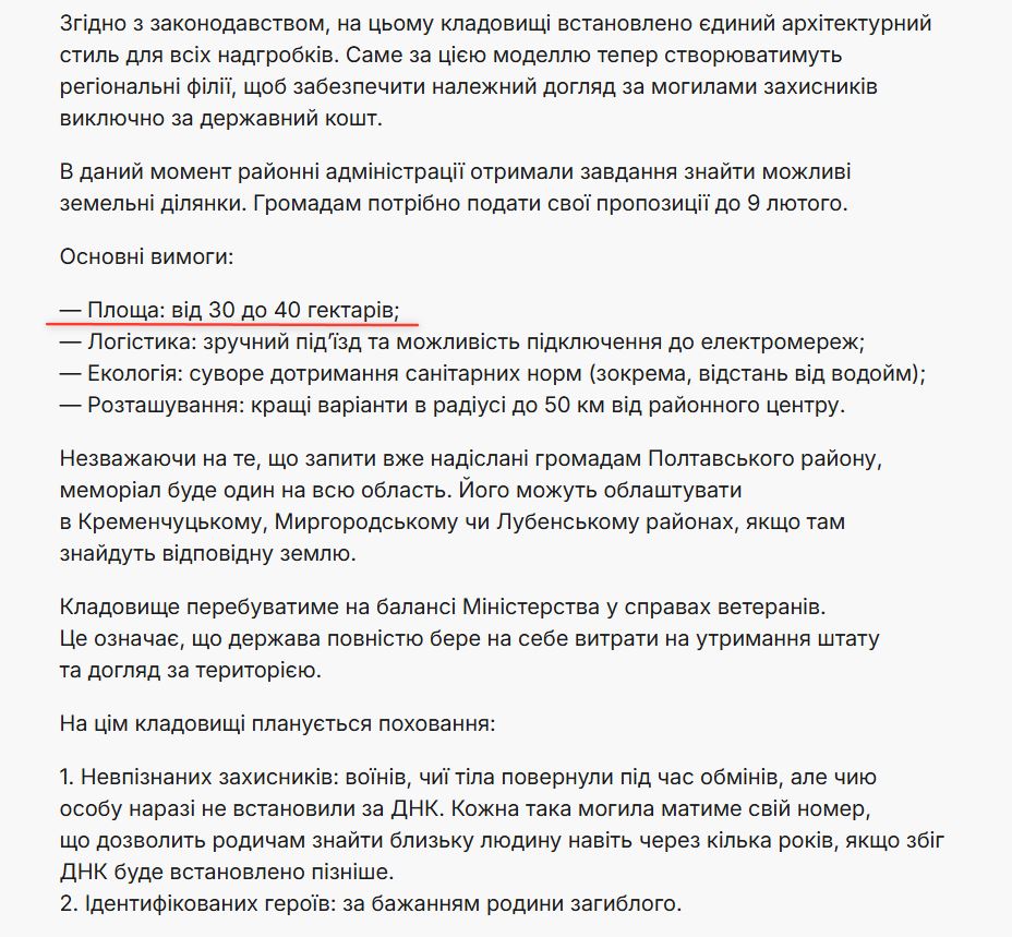 В Полтаве откроют новое кладбище убитых военнослужащих ВСУ области