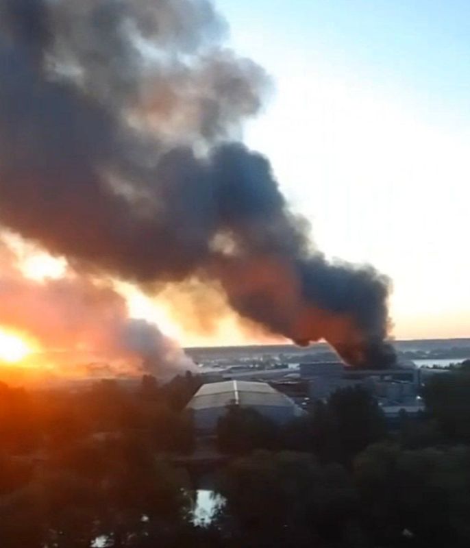 Масштабный пожар вторые сутки продолжается на турецком заводе в Киеве, где должны были запустить производство БПЛА «Байрактар» (фото 1)