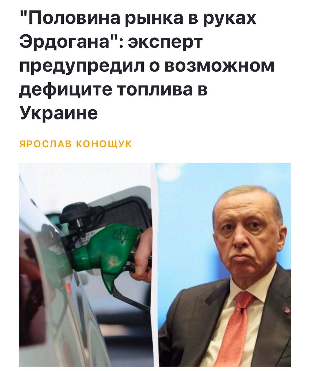 Экспертные хохлы предупреждают друг друга о возможном дефиците бензина на Украине и боятся попасть в топливную кабалу к Эрдогану.