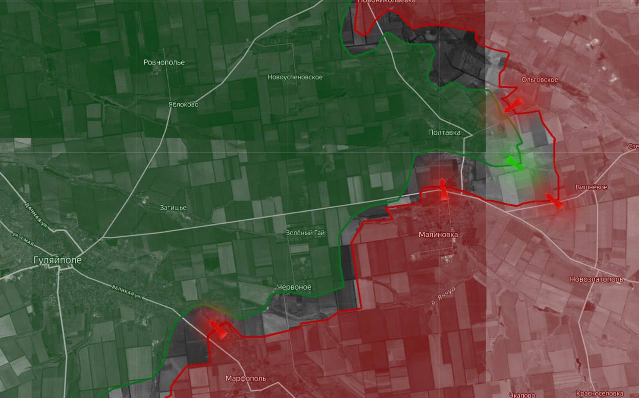 «На Днепропетровском направлении ВС РФ закрыли «карман» площадью до 6,6 км севернее населенного пункта ОльговскоеПродолжаются бои в районе Полтавки, а также в направлении Успеновки».Вражеские сводки