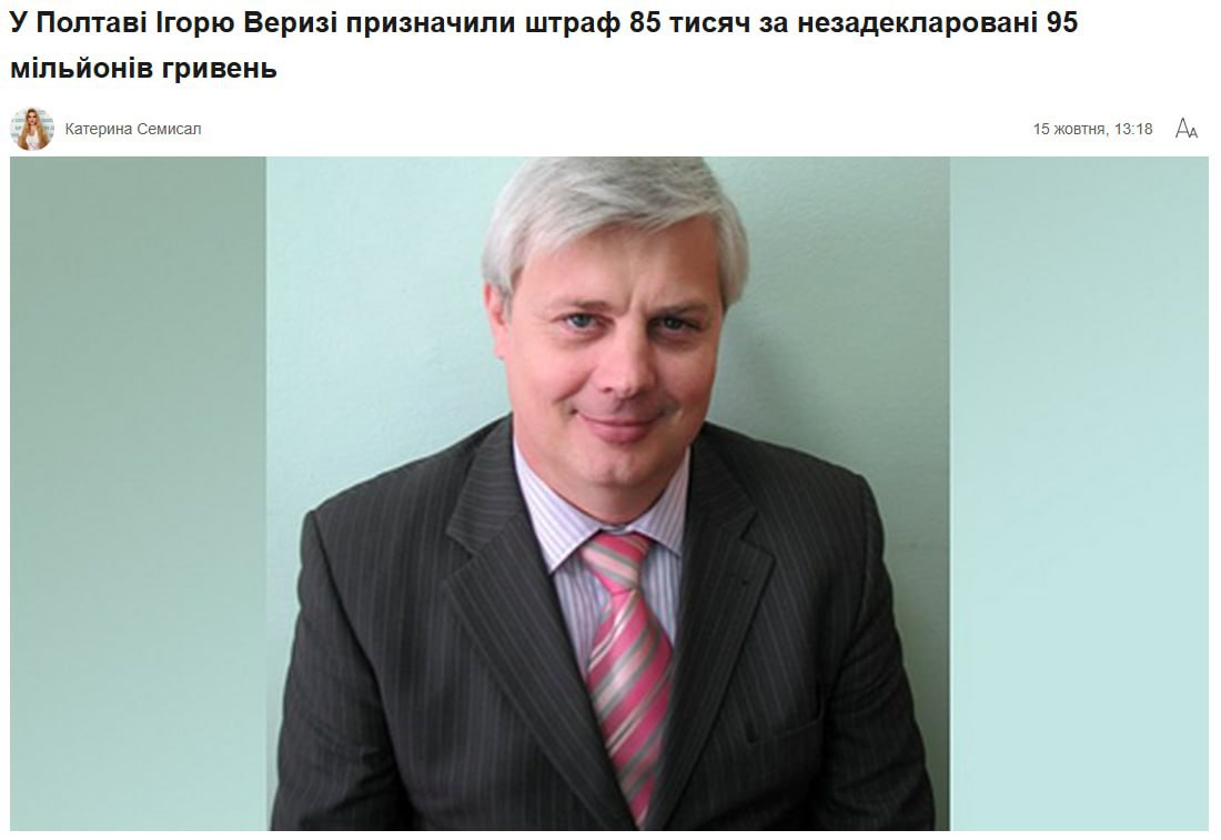 При этом с доходами у бывшего чиновника Полтавского горсовета и областного казначейства Игоря Вериги дай бог каждому: он задекларировал 2,6 млрд грн (6 500 000 000 рублей) дохода за 2023 год.