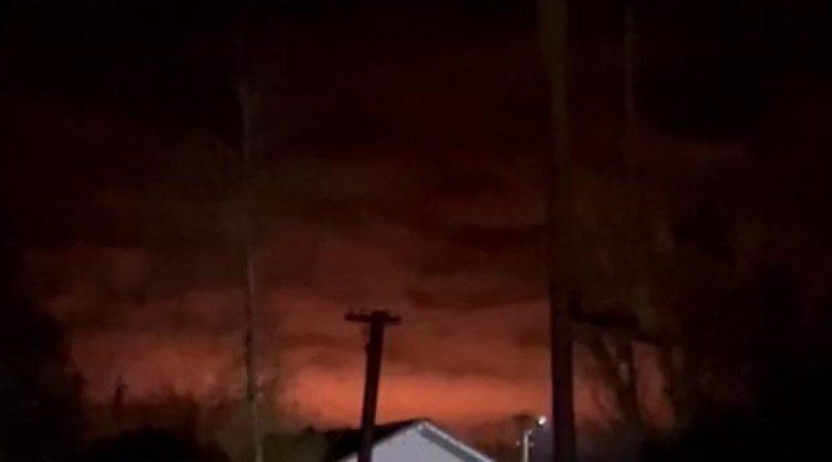 Зарево в Полтавской области в результате работы БПЛА Герань