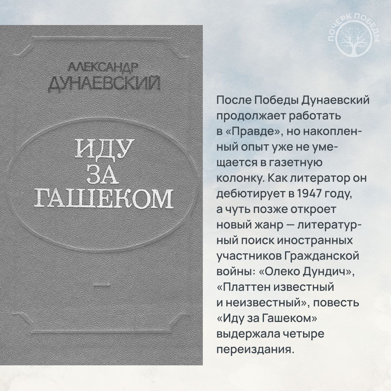 После Победы Дунаевский открыл в себе талант, который выплеснул на страницы новым жанром — литературным поиском исторических персонажей.