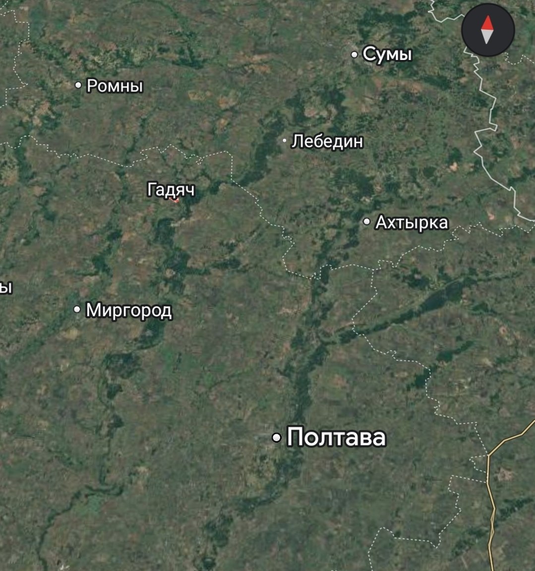 Сильный пожар в городе Гадяч Полтавской области после удара 10 дронов.